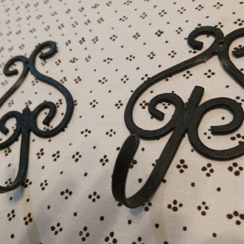 2 valurautaista uutta pyyhekoukkua/ripustuskoukkua. Korkeus n. 18 cm ja leveys n. 10 cm.