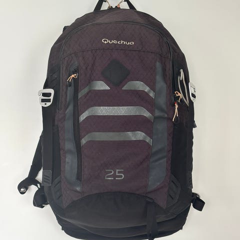Victorinoxin musta reppu useilla vetoketjutaskuilla ja sivukiristysremmeillä. Säädettävät, pehmustetut olkahihnat ja hengittävä selkäosa.