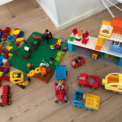 Myydään iso setti LEGO Duplo -palikoita, jossa mukana seuraavat täydelliset setit: