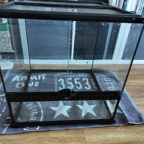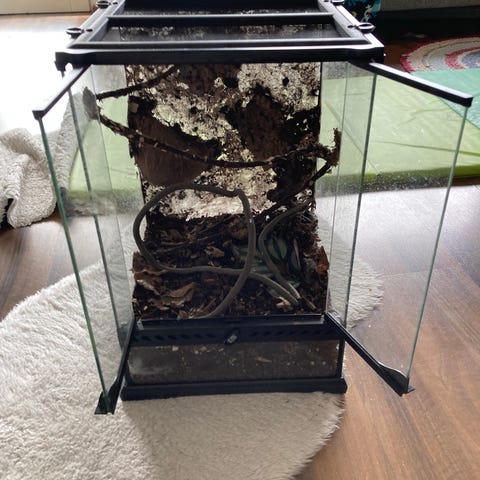 Edellinen asukas on ollut viljakäärme, jolle loppuelämän kodiksi tämä on liian pieni. Sopii sammakkoeläimille, käärmeille tai jyrsijöille.