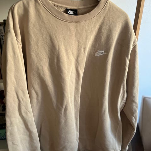 Musta Nike collegepaita koko XL, puuvillaa ja pieni logo rinnassa, väljä malli.