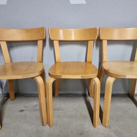 Istumapinnan lakkaus patinoitunut, mutta ei haittaa käyttöä.