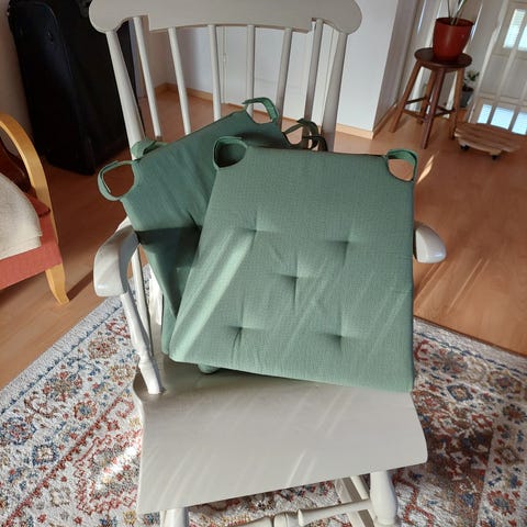 Neljä kappaletta istuin ja selkänoja pehmusteita, kestää konepesun. Nouto Saimaanharjulta ja maksu mieluiten mobile paylla.