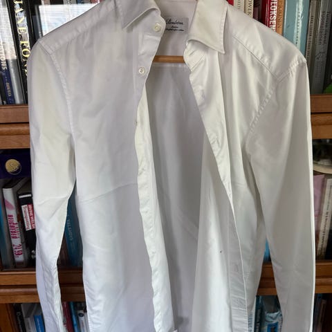 Sininen Stenströmsin miesten kauluspaita kokoa M, 100 % puuvillaa. Pitkät hihat, nappikiinnitys edessä ja napit hihansuissa.