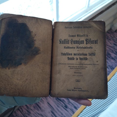 Päivän tunnussana kirja vuodelta 1939 talvisodan alta. Kirjoitus on tuota vanhempaa kirjoitustyyliä painettu Sortavalassa suotavaan evankelinen seura. Kirja on varmaan arvokas jäänne tuolta ajalta.