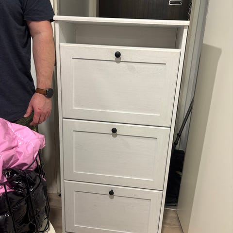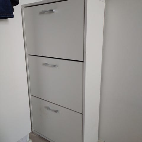 Hyväkuntoinen IKEAn kenkäkaappi, jossa 3 lokeroa, eli ainakin 6 kenkäparia.