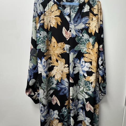 Zizzin violetti arkimekko kokoa M, polyesteriä ja pitkät hihat. Kukkakuosi kauttaaltaan ja suora malli, helma noin polven yläpuolelle. Zizzin vaatteet on tehty pluskokoisille naisille ja mekko on todella reilu kokoinen.