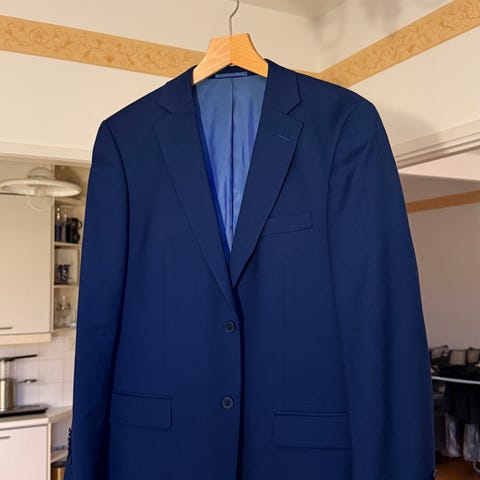 Upea Boggin tehdaskaupasta ostettu puku kokoa 50, valitettavasti liian pieni nyt minulle. Hieno ruskeahko väri, saa tulla myös kokeilemaan. Käytetty ehkä viisi kertaa