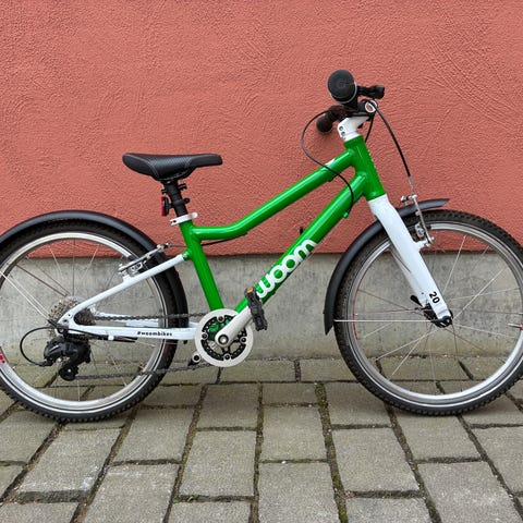 Myydään Woom lastenpyörä 20" renkailla, sinivalkoinen runko ja matala runkomalli. Pyörässä on käsijarrut, vaihteet, lokasuojat ja seisontatuki.