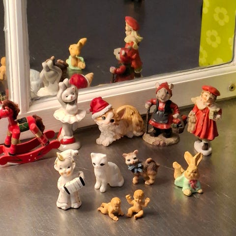 Posliini bambi 50-luvulta. Hyväkuntoinen, poikasen häntä ja korva vahingoittuneet.