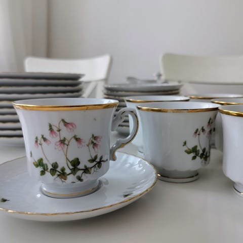 Yhdestä pullalautasesta pieni pala pois, näkyy kuvassa. Muuten hyvä kuntoiset.