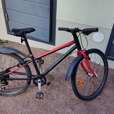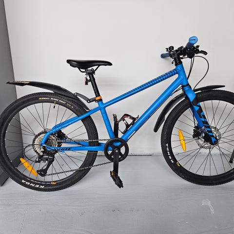 White 24 renkailla, 8-Shimanon vaihdetta, hydrauliset levyjarrut, uudet käsigripit ja lokarit.