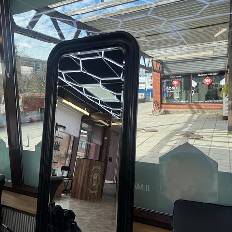 Peili, ( pinnassa "graafinen lasimaalaus")