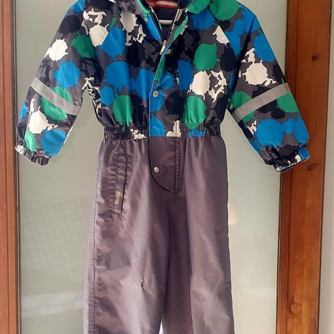 Erinomaisessa kunnossa oleva talvipuku. Tässä puvussa on hyvä vuori, joka pitää lämpimänä. Koko on 104cm. Polvi kohdat eivät ole haalistuneet ollenkaan. Voin postittaa myös.