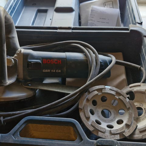 Kulmahiomakoneet 125mm ja 230mm, mukaan laukku, uusia laikkoja, timanttilaikkoja ja timanttikuppilaikka.