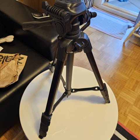 Käyttämätön kolmijalka, KN-TRIBODI 10. Korkeus pisimmillään 18 senttiä. Läh.kirje 20e. (100g-2 merkkiä)