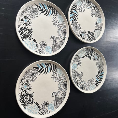 9 kappaleen setti 26cm lautasia. Kolme valkoista, kolme mustaa ja kolme Marimekon Bottna-kuosilla. Myyn mielellään vain settinä.