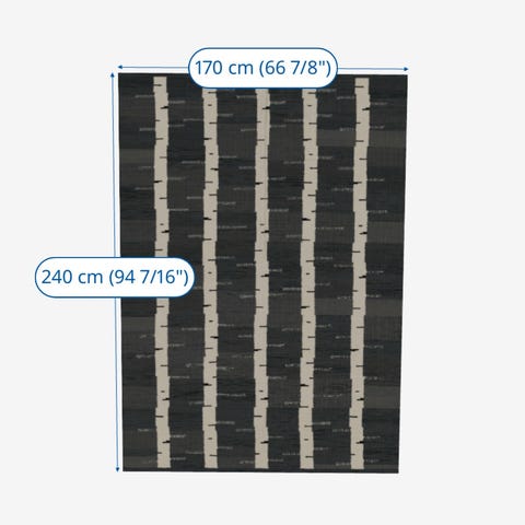 IKEA:n raidallinen musta–valkoinen matto. Paksumpaa kudosta, toimii hyvin vaikka olohuoneeseen tai keittiöön.