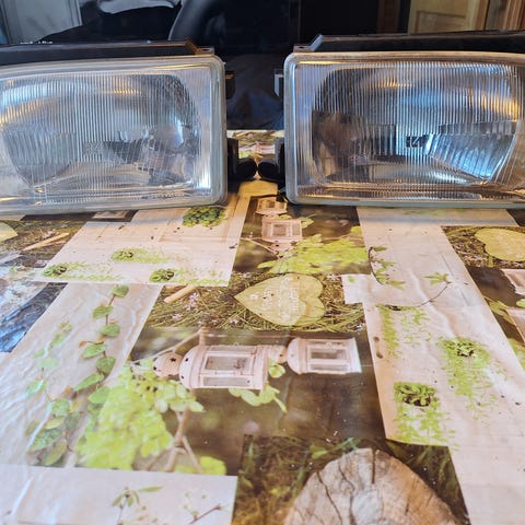 Opelin etuvalo, Bosch-valmistajan umpio alkuperäisellä tarralla. Liittimet ja kiinnityskohdat näkyvät kuvissa, muovikehys mukana.