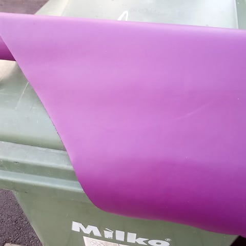 Myynnissä useampi erivärinen nahka askarteluun ja käsitöihin. Väreinä mm. punainen, konjakki ja vaaleita sävyjä, yhdessä palassa kohokuvioitu Pinta. Parkkia on 1.2-2.4mm paksua vaaleaa ja mustaa