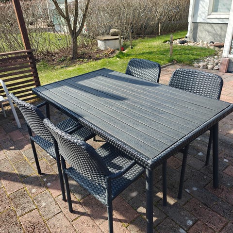 Myydään puutarhapöytä halkaisija 105cm ja 4 kpl. tuoleja. Tuolit ovat hyvät istua. Nouto Vääksystä.