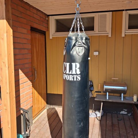 Sininen siistikuntoinen nyrkkeilysäkki, pituus noin 65cm