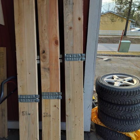 Jykevä itse tehty kulmamallinen "sohva" ilman pehmusteita.