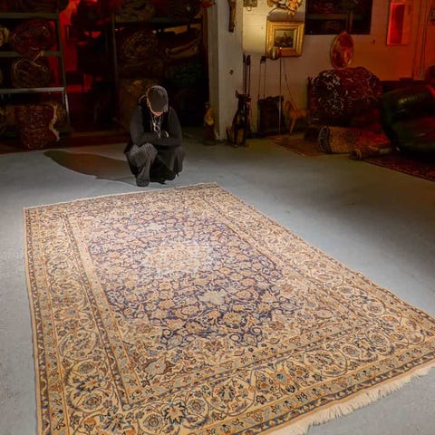 käsinsolmittu itämainen aitomatto villamatto vintage persialainen aito villa ghom vaalea iso matto käsinkudottu käsin käsintehty käsityö antiikkimatto vintagematto helsinki helsingissä