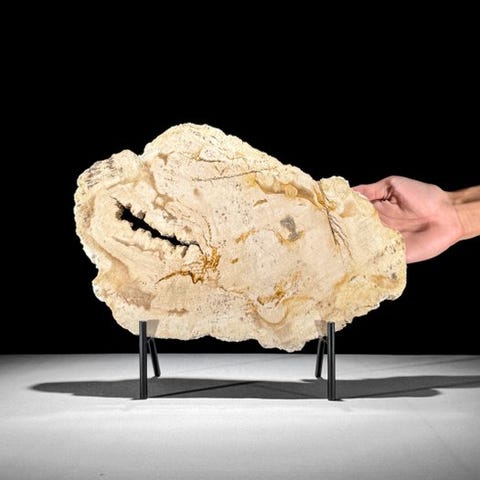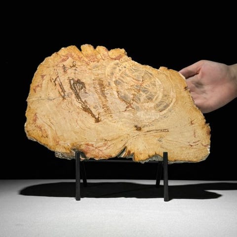 Upea pala petrifioitunutta puuta räätälöidyllä jalustalla.Petrifioitunut puu on mineraalisoitunut pala puusta, joka syntyi, kun puut kaatuivat ja peittyivät maan tai hiekan Alle. Usein luonnononnettomuuden vuoksi. Näet petrifioidussa puussa värejä, jotka riippuvat maaperän tai hiekan mineraaleista. Jokainen mineraali luo oman värinsä. Petrifikaatioprosessi varmistaa, että kaikki ominaisuudet, kuten solmut, kuori ja vuosirenkaat, säilyvät. Mahdollisesti hajoavaa prosessia kaukaisessa menneisyydessä voi tarjota upeita kiteytymiä, usein useissa väreissä.Arviot mitat - mukaan lukien jalusta:Korkeus: 30 cm - Leveys: 30,5 cm, Viipaleen paksuus: 1,6 cmArviot mitat ilman jalustaaKorkeus: 25 cm - Leveys: 30,5 cm, Viipaleen paksuus: 1,6 cmRajoitukset:- Huomaa, että erään kuvan on ottanut pimeä studio, värit voivat vaihdella ympäristön mukaan.- MAINITTU PAINO SISÄLTÄÄ PAKKAUSMATERIAALIN.TOIMITUS- Tuotteen lähetetään seurantaluvulla Track & Trace DHL Parcelin, DPD:n tai PostNL:n kautta. Seuranta päivittyy Catawiki-lotillesi, kun pakettisi on jätetty kuljettajalle.- Tarkista säännöllisesti, ettet saa pakettia palautettuna meille, jolloin ostaja vastaa toisen toimituksen lähetyskustannuksista.- Seurantaa varten Espanjaan ja Portugaliin käytä tätä linkkiä ja lisää Catawiki-lotiltasi saamasi seurantanumerohttps://clientesparcel.dhl.es/LiveTracking/Home- EMME YHTEENSOVITA TOIMITUKSIA!!!- Jos sinulla on kysyttävää pakettisi suhteen, ota yhteyttä Catawiki-viestipalvelun kautta. Pyrimme vastamaan kolmen työpäivän kuluessa.