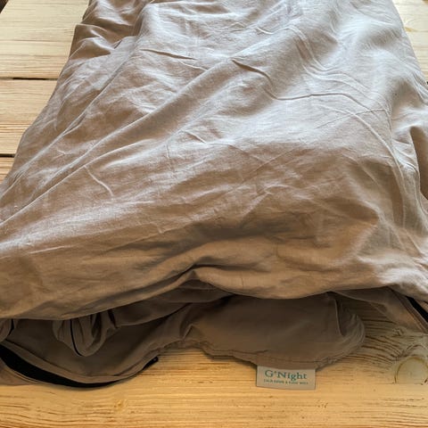 Jyskin Gjendetunga-painopeitto, koko 150x210 cm ja paino 7 kg. Mukana oma vetoketjullinen kantokassi, jossa on kantokahvat.