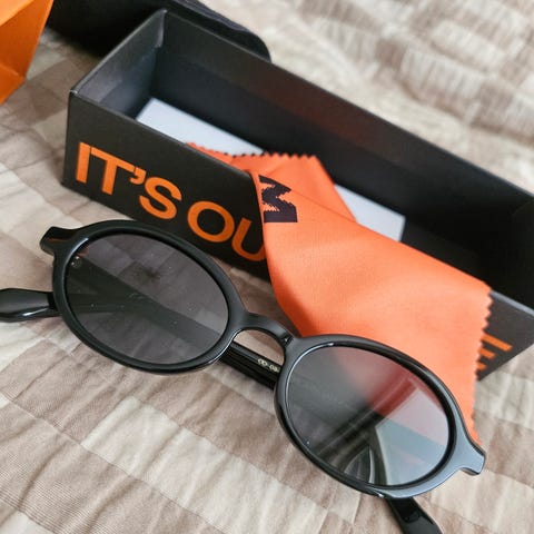 Mellerin käyttämättömät tyylikkäät aurinkolasit, malli Kira unisex. Sisältää paketin, säilytyspussin ja liinan.