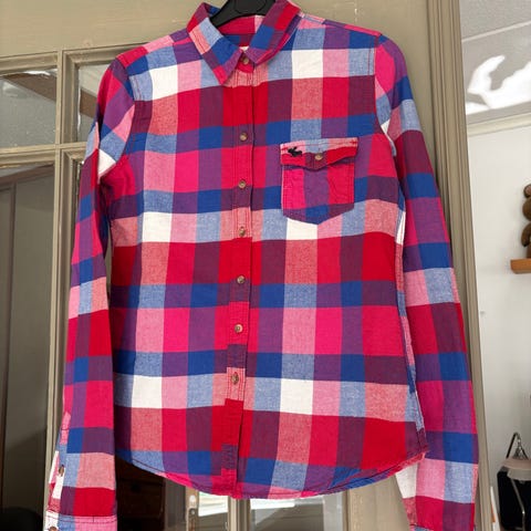 Marimekon vaaleanpunavalkoraidallinen puuvillapaita, koko XL. Nappikiinnitys edessä ja kauluksellinen malli.
