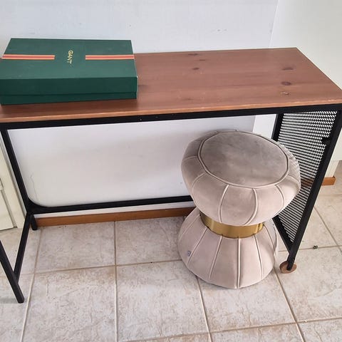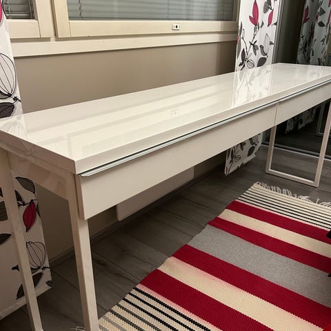 Pientä kolhua pinnassa ja liimajälkiä laatikoissa