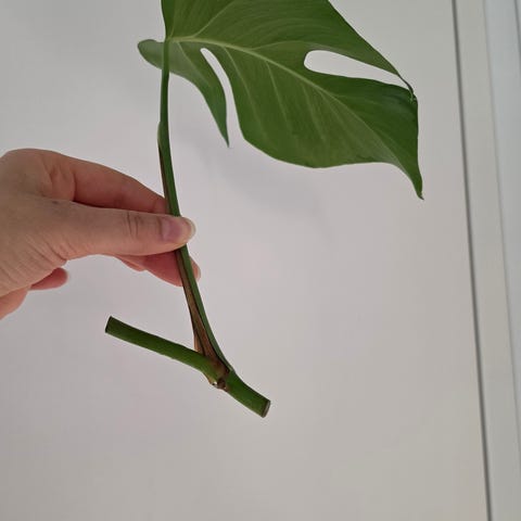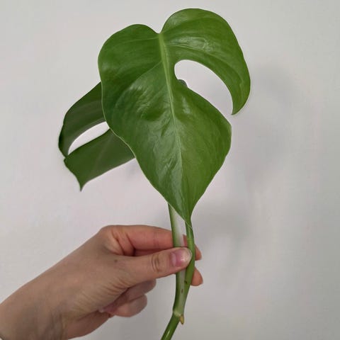 Monstera variegata varsipistokas, runsaalla valolla voisi kannustaa tuottaamaan kirjavampia lehtiä.