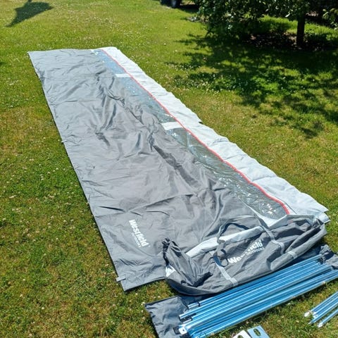 Hyväkuntoinen, ehjä ja siisti aurinkokatos vaunuun tai autoon. Mitat 3 x 2 m.