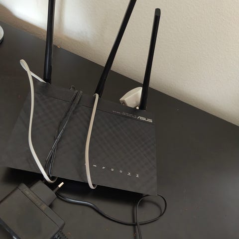 Kuvan mukainen reititin uuden tieltä pois. Useamman vuoden vanha jo mutta pelittää ja suoraan käytöstä.