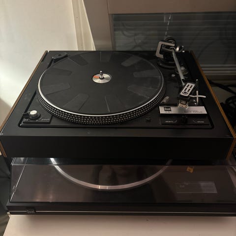 Audio Technica AT‑LP60XUSB automaattinen levysoitin USB-liitännällä. Etupaneelissa painikkeet helppoon käyttöön ja läpinäkyvä pölysuoja päällä.