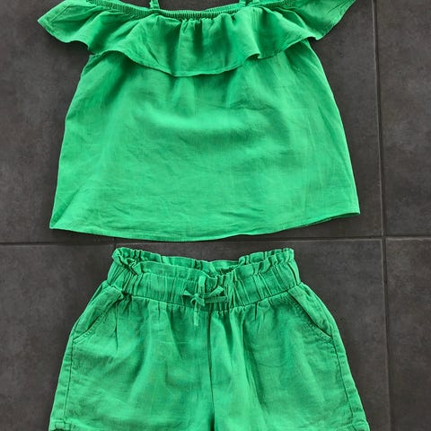 Lindex vihreä toppi ja shortsit koko 134-140