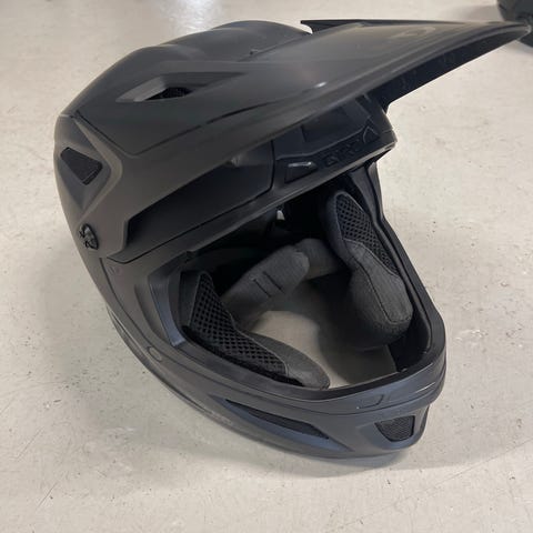 MET Parachute MIPS -maastopyöräilykypärä mustana, irrotettavalla leukasuojalla. Paljon ilmanvaihtoaukkoja ja säädettävä lippa, sisällä pehmusteet ja leukahihna.