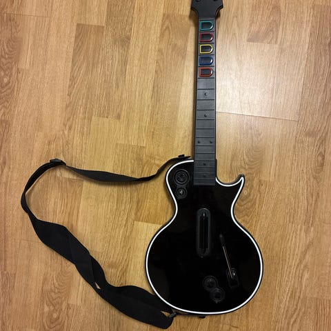 Kuvan mukainen täysin toimiva guitar hero kitara ps3 konsolille. Toiminta testattu. Usb vastaanotin mukana. Tyyppivika korjattu eli kondensaattori vaihdettu uuteen isompaan. Postitus onnistuu tarvittaessa.