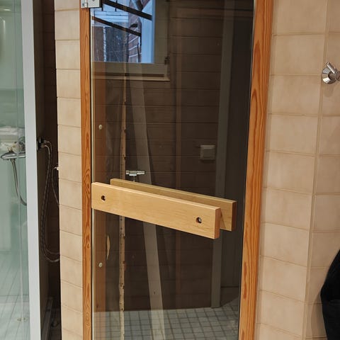 Myytävänä vanha puinen saunan ovi, ilman karmeja (menivät rikki irrottaessa). Mitat n. 69 x 10cm & k 190cm. Paneloitu, tummanruskea, painava, kahvallinen. Käytön jälkiä & kulumia löytyy vähän. Mukaan tulee saranat & ruuvitkin saa.