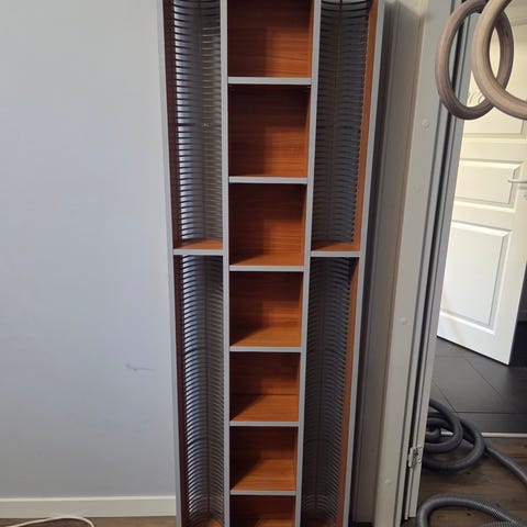 Hyväkuntoinen kaluste cd-levyille. Kuvan levyt eivät kuulu kauppaan. Maksu mobilepay tai käteinen.