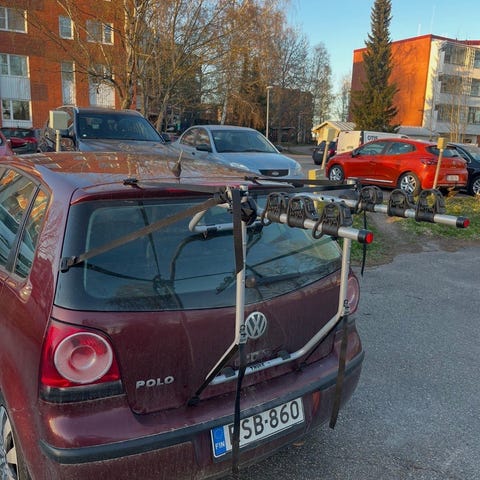 Uutta vastaava kahden polkupyörän kuljetusteline