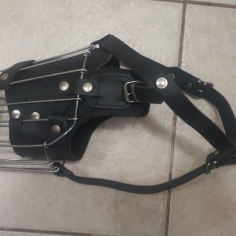 Nahkainen kuonokoppa, hyväkuntoinen ja tukeva. Isolle koiralle.