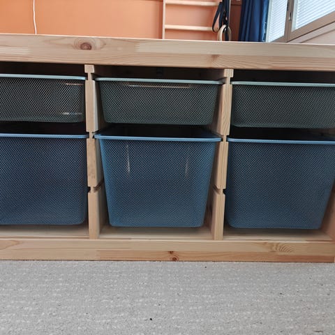 Myydään kaksi vaaleanpunaista trofast laatikkoa ja niihin kannet. 42x30x23