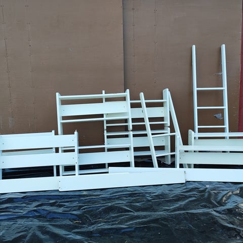 Sängyn valmistajasta ja valmistuspuusta ei ole tietoa. Päätyosien mitat ovat n. 86 cm korkeus, 65 cm leveys. Pinnaosat ovat n. 104 cm pitkät, 55 cm korkeat. Osissa näkyy käytön jälkiä ja kulumisia, joita sopivilla välineillä saa poistettua. Osien kiinnittämiseen ei löytynyt alkuperäisiä ruuveja, joten sellaiset pitää etsiä muualta. Muutenkin tämä sänky puutteineen sopii parhaiten korjauskykyiselle, jolla tarvikkeita ja kiinnostusta on. Osat saa hakea 6 eurolla.