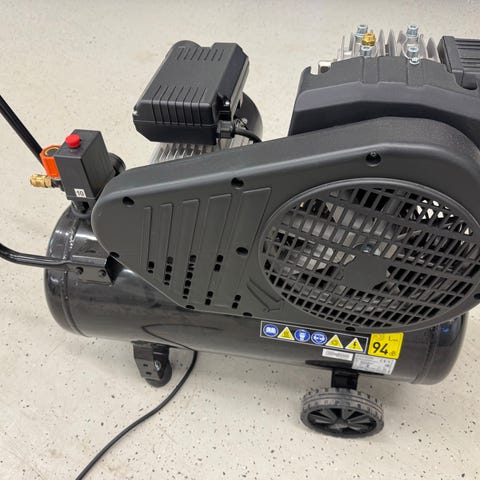 System Block NP/4 D.B. paineilmakompressori pyörillä ja kahvalla, helppo siirtää. Säiliö alla ja ohjauspaneelissa painemittarit sekä kytkimet.230v.Imutuotto 320l/min.50l.