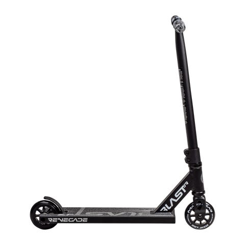 Nuoremmille skuuttaajille suunniteltu Freestyle-temppupotkulauta. Vakaa ja leveä alusta. Vakaat komposiittipyörät. Pehmeät SQUID-kahvat. ABEC-7-kuulalaakerit. MFX - Komposiitti blitz brake. Paino: Noin 3050 grammaa.MGP:n Renegade Blast Junior tarjoaa nuorille skuuttaajille täydellisen alun temppupotkulaudalla ajamiseen korkealaatuisilla komponenteilla. Leveä, lyhyt ohjaustanko ja 4,5 tuuman levyinen dekki tarjoavat enemmän turvallisuutta ja vakautta temppuja suoritettaessa. Pehmeät SQUID-kahvat vaimentavat hyppyjen iskuja, ja kevyet 100 mm:n renkaat on suunniteltu nopeiksi.Kruisailetpa kouluun tai ajat paikallisessa skeittiparkissa, tämä temppupotkulauta on suunniteltu vastaamaan nykypäivän kunnianhimoisten käyttäjien vaatimuksiin.HUOMAA! Suosittelemme käyttämään potkulautaillessa aina kypärää, mielellään myös käsineitä.