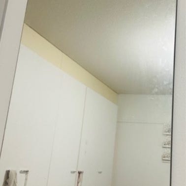 Koristeellisilla puukehyksillä oleva peili. Peilin saa piiloon ovien taakse, jos ei halua siihen katsella.