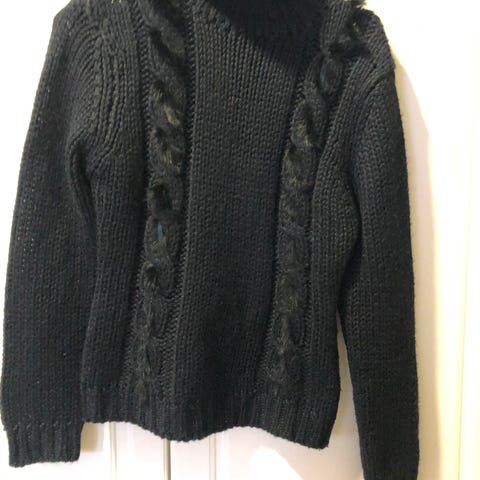 Kaunis neuletakki palmikkoneulosta edessä, käännettävät hihansuut, huppu ja koristenapit. 100% puuvillaa, suora malli. Sopii hyvin koolle M 38/40 löysänä S 36. Kokolapussa L, on pienempää kokoa.